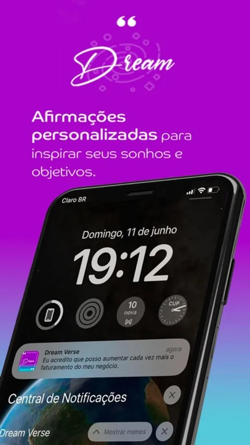 Com o Dreamverse, você pode receber notificações personalizadas de afirmações diretamente no seu celular.