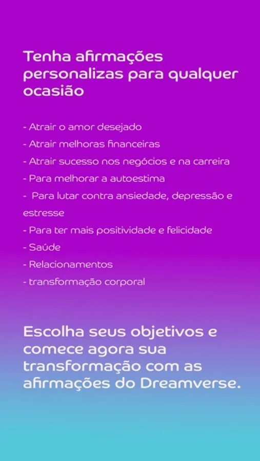 Transforme seus sonhos em realidade e conquiste seus objetivos com afirmações personalizadas do Dreamverse.