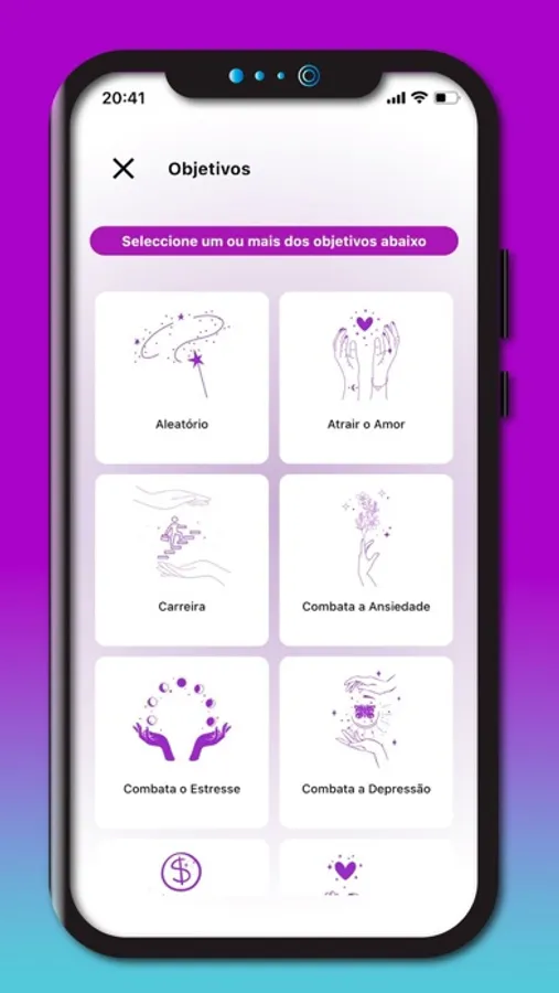 Você define a frequência, escolhe os seus objetivos e nós fornecemos as afirmações certas de acordo com o que você deseja ter.
