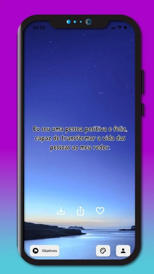 Este aplicativo é feito para inspirar, motivar e ajudar você a alcançar seus objetivos através do poder das afirmações positivas.