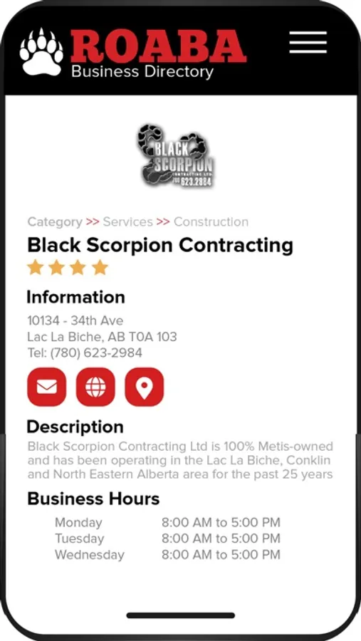 The Resource One Aboriginal Business Association (ROABA) is a non-profit organization that consists of Aboriginal Businesses, committed to networking between membership, enhancing industry communication, and promoting business for the betterment of all people in the region. This App presents the location and details of our member businesses and offers the ability for industry partners to connect with, and leverage the skills of our members and affiliates.
