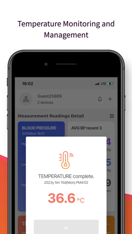 Users can conveniently and securely check their body temperature and blood pressure in real-time through the app, even during sleep when continuous temperature monitoring is challenging.
