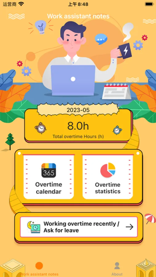 Work assistant notes,Record the time, duration and details of leave and overtime work. Do a good record can be calendar view, list view, as well as overtime and leave time statistics function.