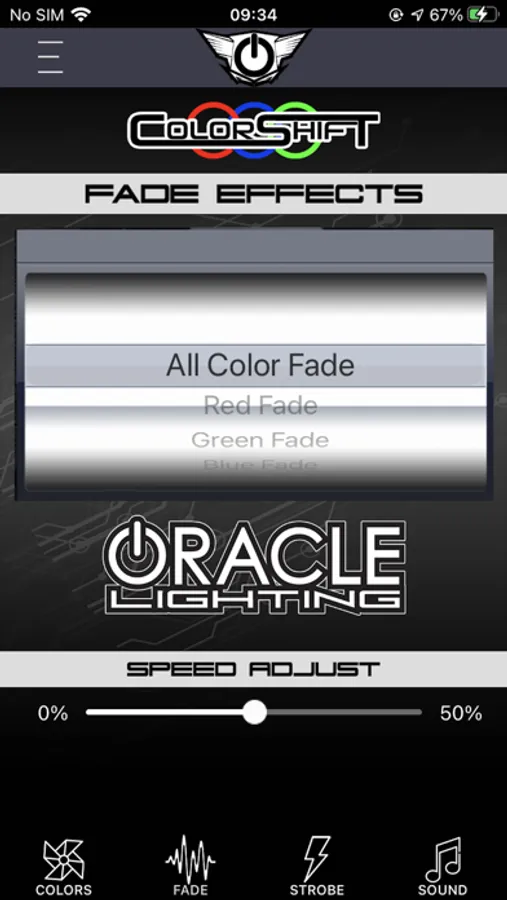 The NEW ORACLE Lighting ColorSHIFT PRO app now allows you to control both your ColorSHIFT RGB and RGB+W LED lights in one program. Control your compatible ORACLE ColorSHIFT LED devices with this Bluetooth app. The ColorSHIFT PRO app creates an interface for you to turn your lights on/off, select from dozens of color variations, control patterns, brightness, strobe color, and even control the lights with music.