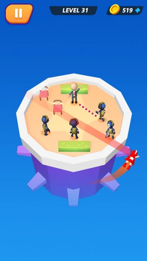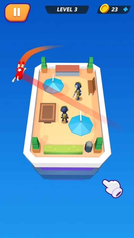 Slide the screen, find the right angle, and attack the bandits by shuttling back and forth, taking care not to harm the hostages