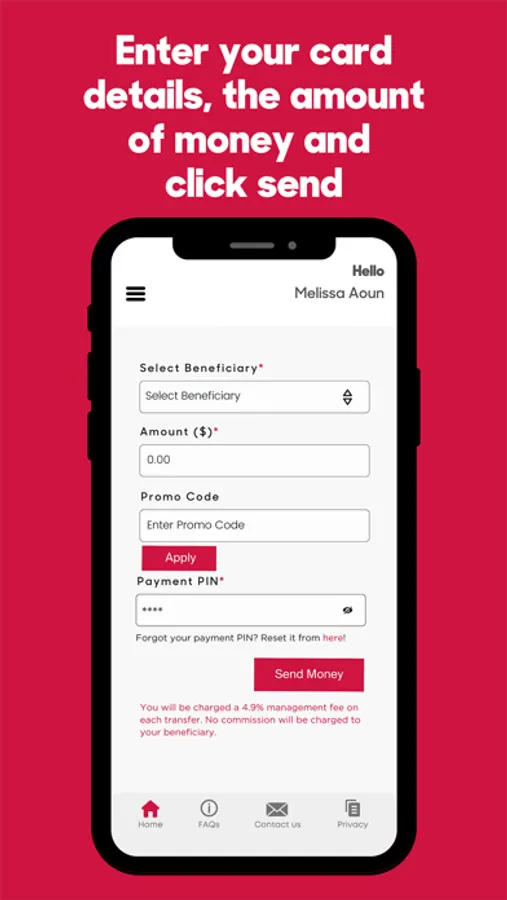 Your beneficiary gets the exact amount you sent, instantly, on their phone. They can then: