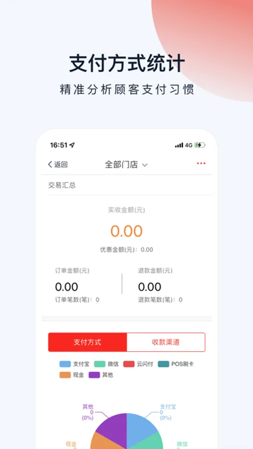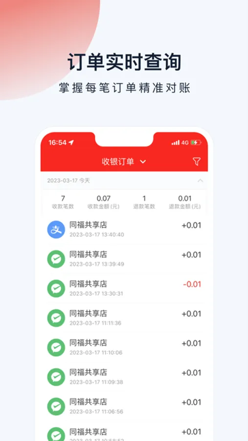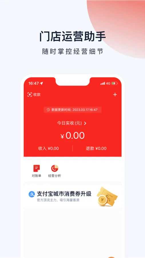 App可以实时查询门店收银、经营数据,对人员、机具进行快速便捷的管理,还可发布多种顾客喜爱的营销活动,以及查询活动详情数据,帮助商家留住身边的生意。
