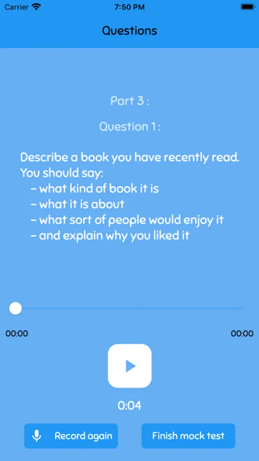 Prepare for the IELTS Speaking test with confidence using our innovative IELTS Speaking Mock Test app powered by artificial intelligence (AI). This app is specifically designed to help you improve your speaking skills and boost your score on the IELTS exam.