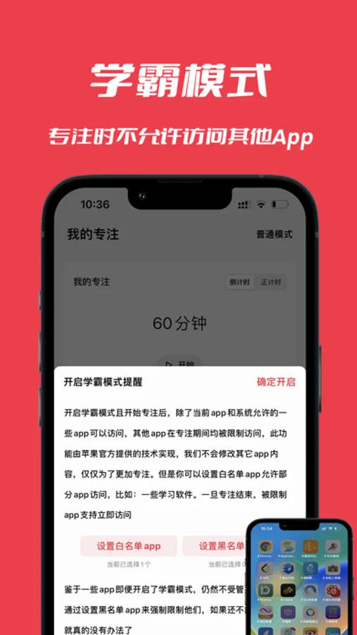 5.支持学霸模式,专注期间限制访问某些App(ios16及以上设备)