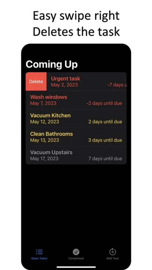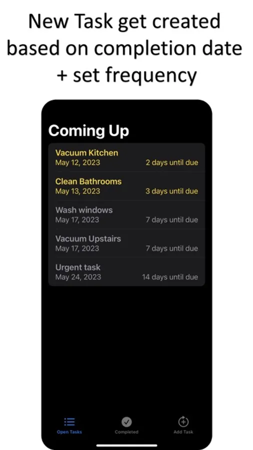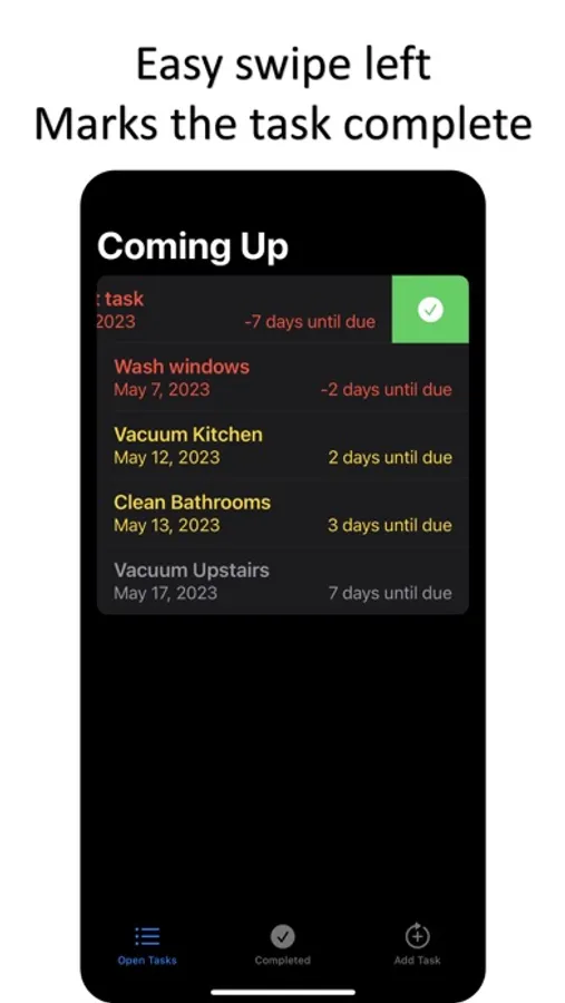 With just a swipe and a tap, you can mark a chore as completed and the app will automatically update the due date based on the frequency you set.