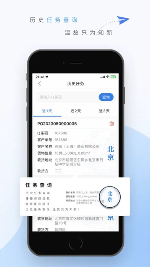 这是一款有关于物流运输的监理App, 您可以在此App中登录您的荣庆物流的监理账号, 查看系统给您派发的任务, 从而进行任务登记、任务上传、车牌绑定、标签打印、任务查询、驾车导航等六大功能操作! 您可以很方便的完成您在物流运输中所涉及的监理工作任务, 且不会有额外的学习成本, 有利于提高您在物流运输中监理工作的工作效率! 同时此App还集成了其他一些小功能, 快来使用吧!