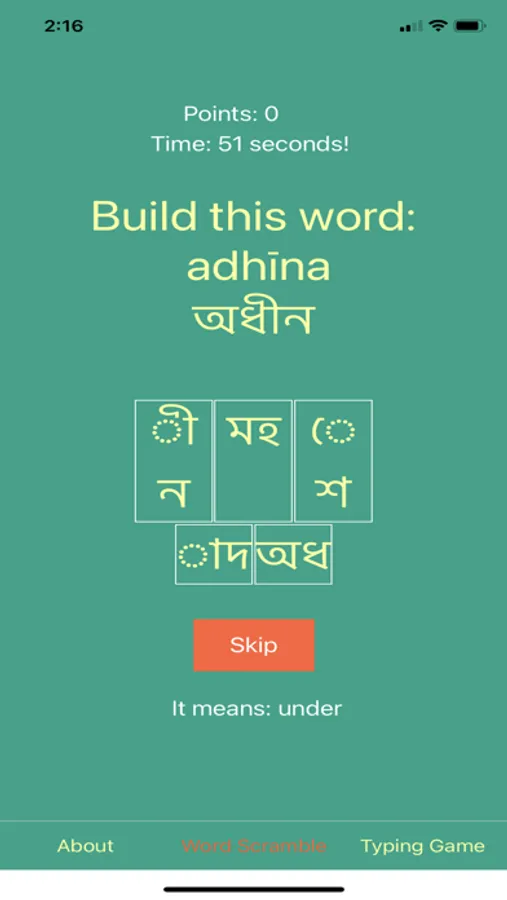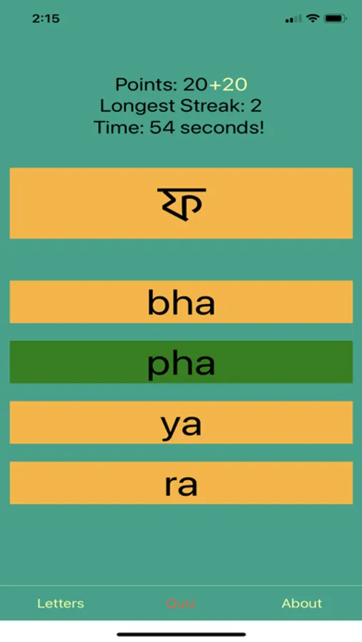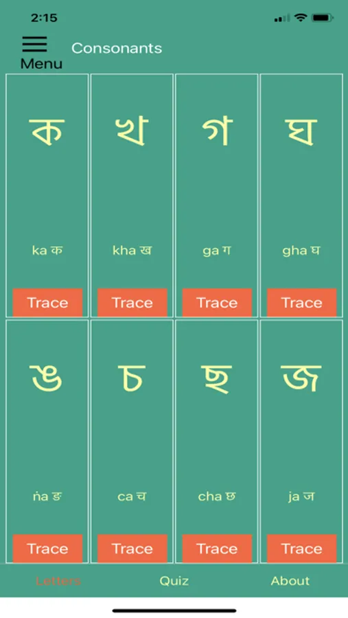 This app can help you learn the Bengali alphabet! Practice tracing each one until you're familiar-- then quiz yourself on the letters!