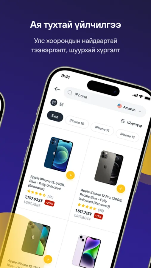Америк болон Хятадын онлайн худалдааны сайтуудаас өргөн сонголт бүхий бараа бүтээгдэхүүнийг бид өөрсдийн хөгжүүлсэн дэвшилтэт системээр дамжуулан найдвартай, хялбар, хурдан захиалах боломжийг танд олгож байна.
