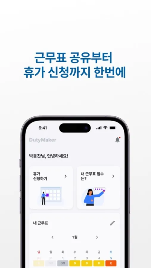 편리하게 휴가를 신청하고 근무표를받아보세요!