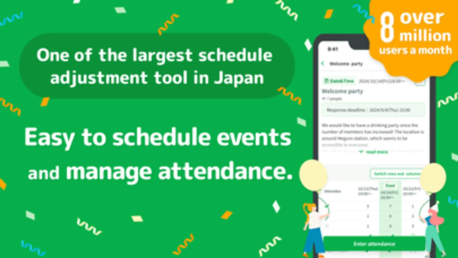 This is the official application of Chouseisan, one of the largest scheduling applications in Japan with over 8 million monthly active users.