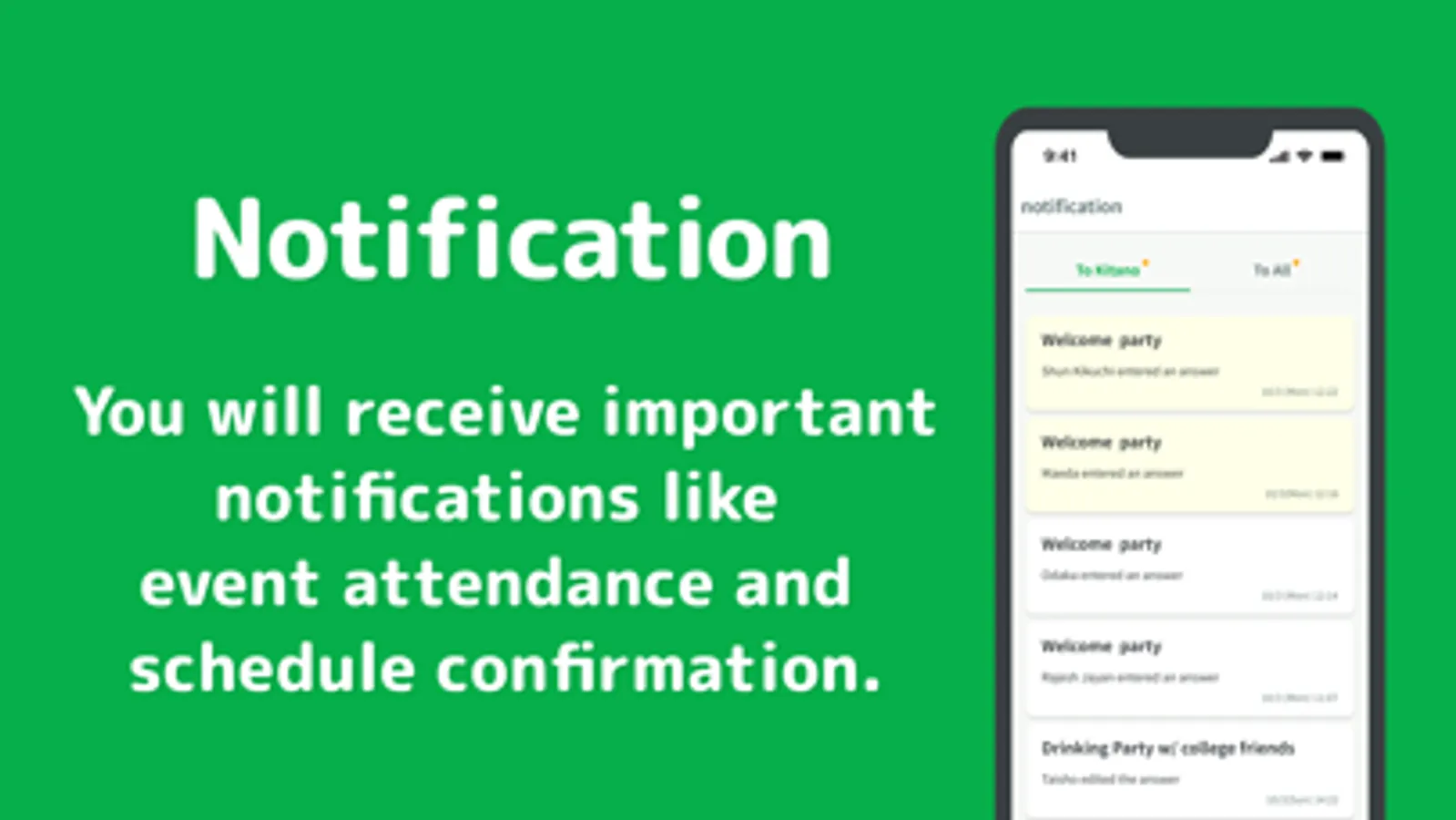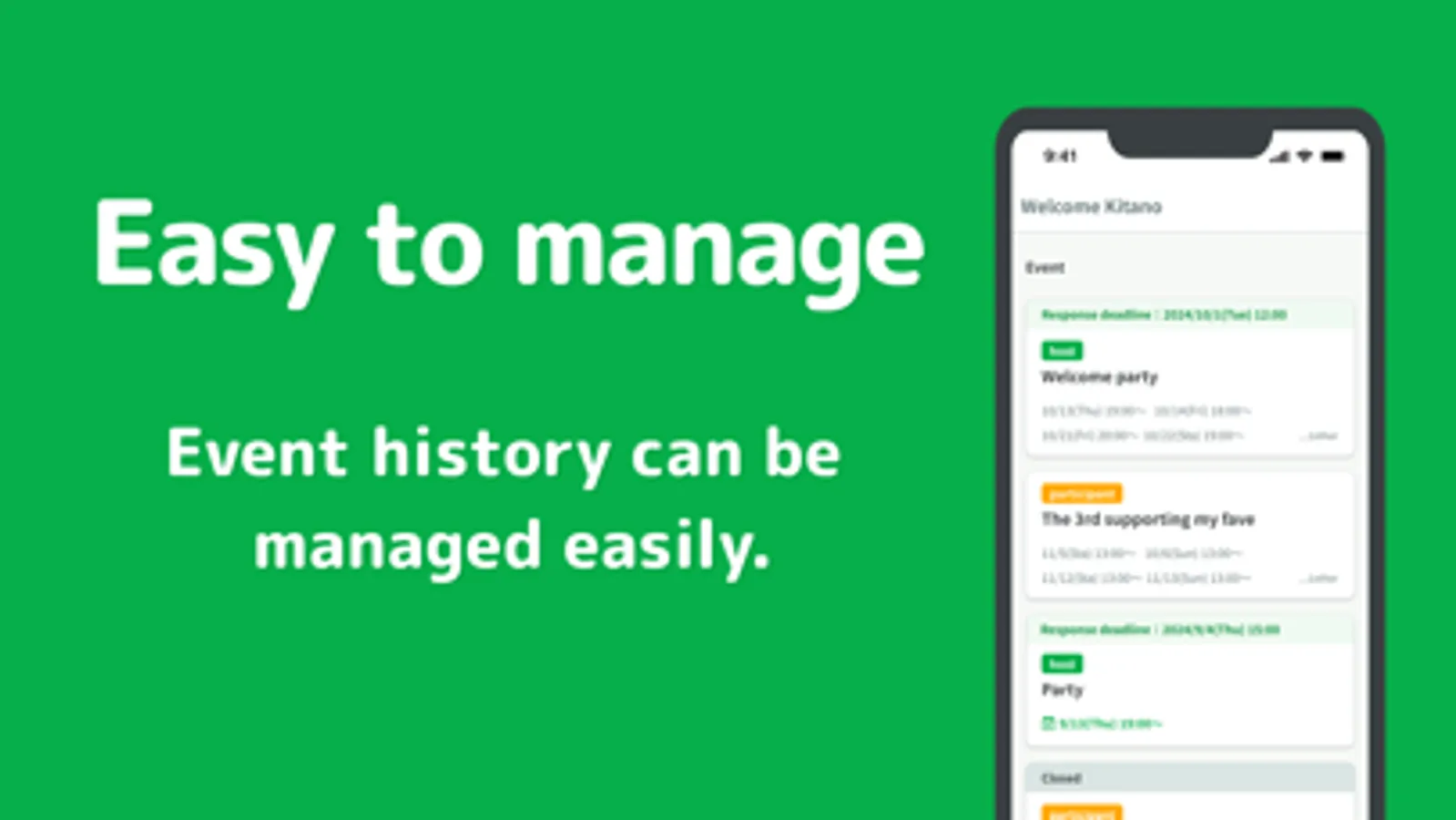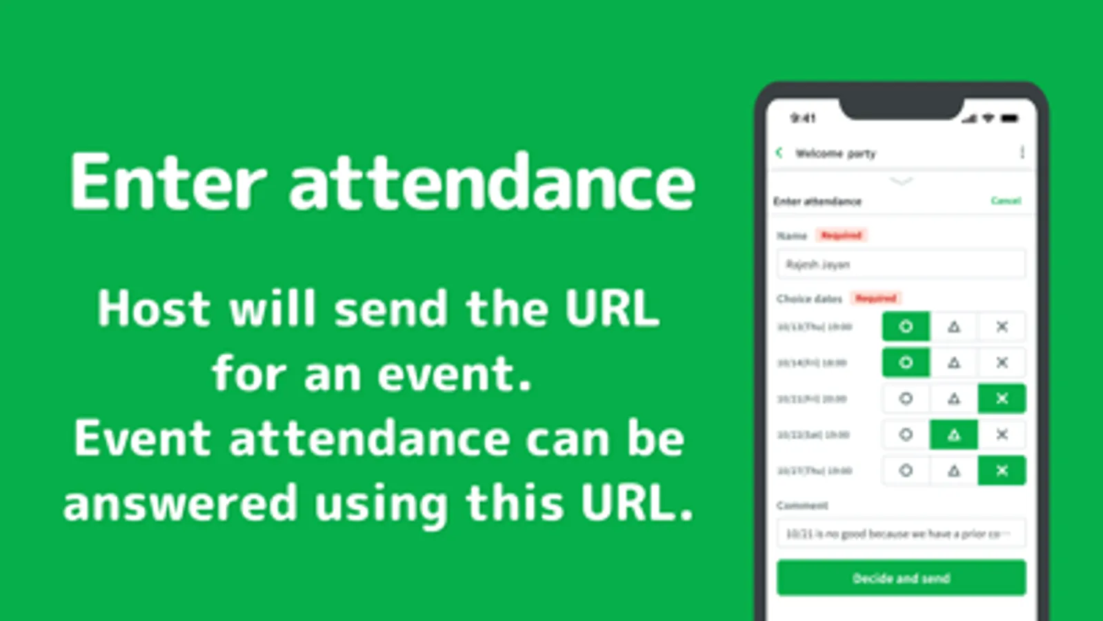 You can create an event page easily by simply entering the name of the event and possible dates. In addition, the URL of the event page can be shared with guests via chat, etc., for easy scheduling.