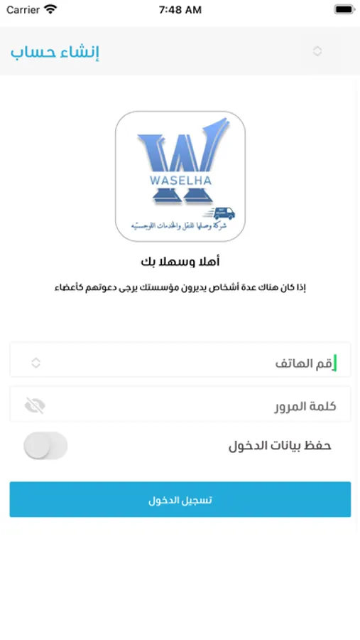 7. Any driver or supplier of Waselha delivery company can download and use it after have an account from their app store .