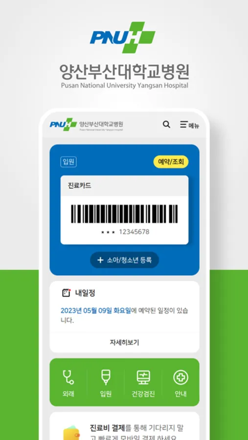 설치하시면 양산부산대학교병원에서 아래와 같은 다양한 서비스를 받으실 수 있습니다.