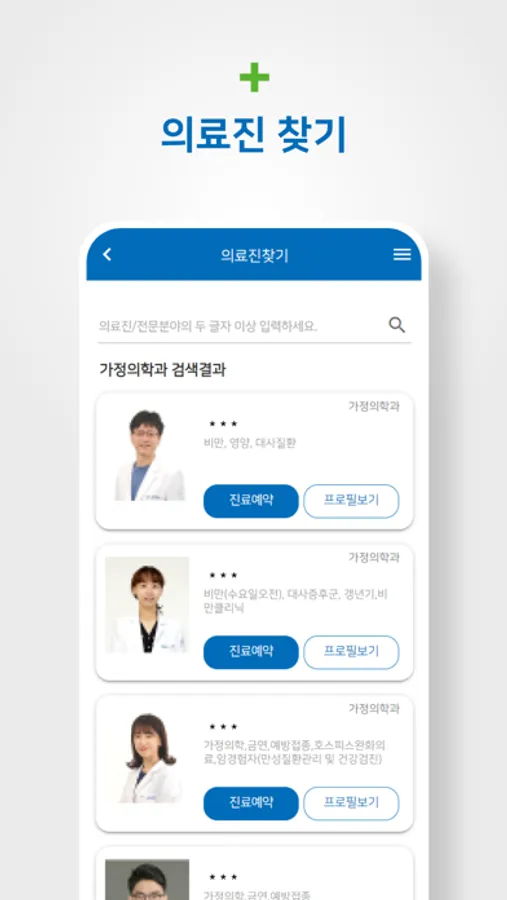 모바일앱에서 진료예약을 간편하게 할 수 있습니다.