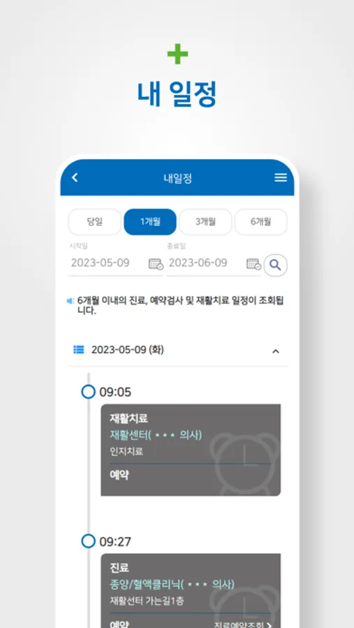 병원에서의 진료일정을 한번에 보실 수 있습니다.