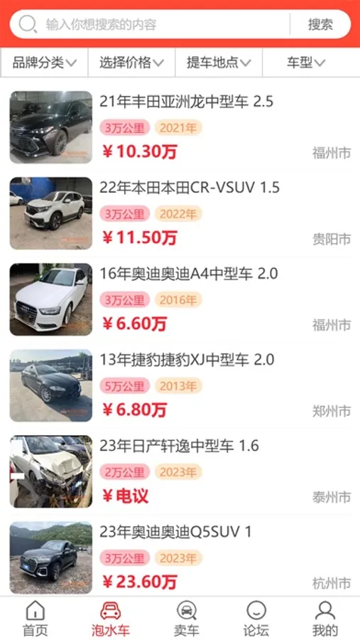 泡水车交易网专业二手泡水车出售市场,提供泡水车、水淹车、涉水车等信息服务,全国泡水车市场行情、泡水车价格评估,打造透明、快速的泡水车辆交易模式。介绍泡水车修复、保险理赔、泡水车回收相关知识,泡水车鉴定、维修、价格评估等实时咨询服务,泡水车交易网专卖泡水车。