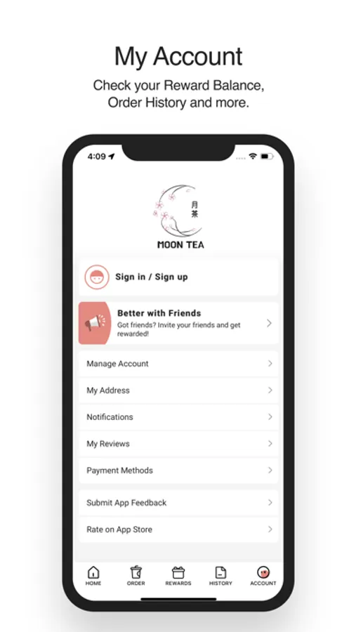Check your Reward Balance, Order History and more.