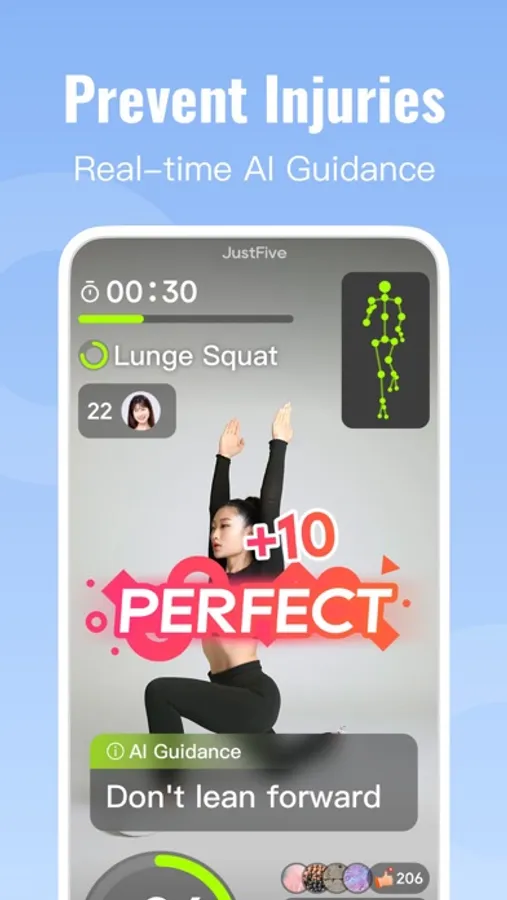 Our AI coach surpasses personal trainers by providing continuous support and motivation. It ensures proper form, corrects errors, and prevents injuries by monitoring your movements.