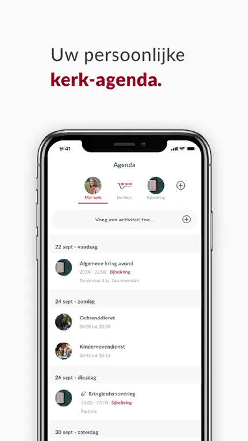 Dankzij onze unieke groepenstructuur helpen wij kerken beter te communiceren. Met de hele gemeenschap, maar ook onderling. U kunt zelf groepen toevoegen en mensen daarvoor uitnodigen. Een slimme timeline zorgt er voor dat iedere gebruiker persoonlijke en relevante informatie ziet.