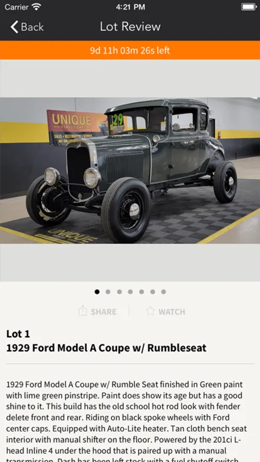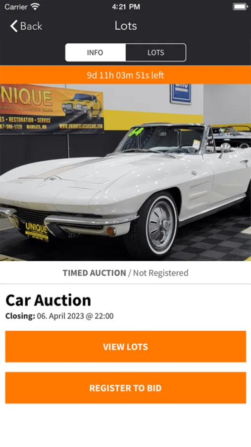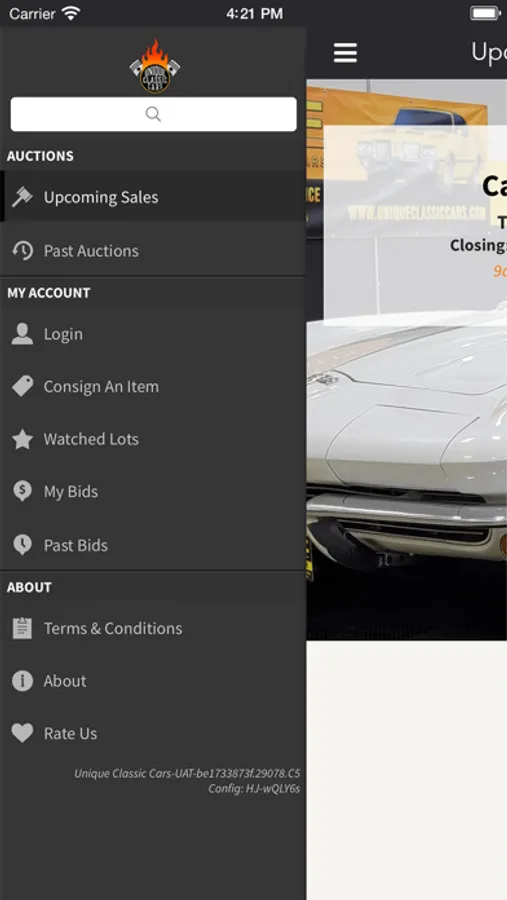With the Unique Classic Car Auctions app, you can preview, watch and bid in our auctions from your mobile / tablet device. Participate in our sales while on-the-go and gain access to our following features: