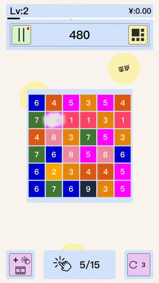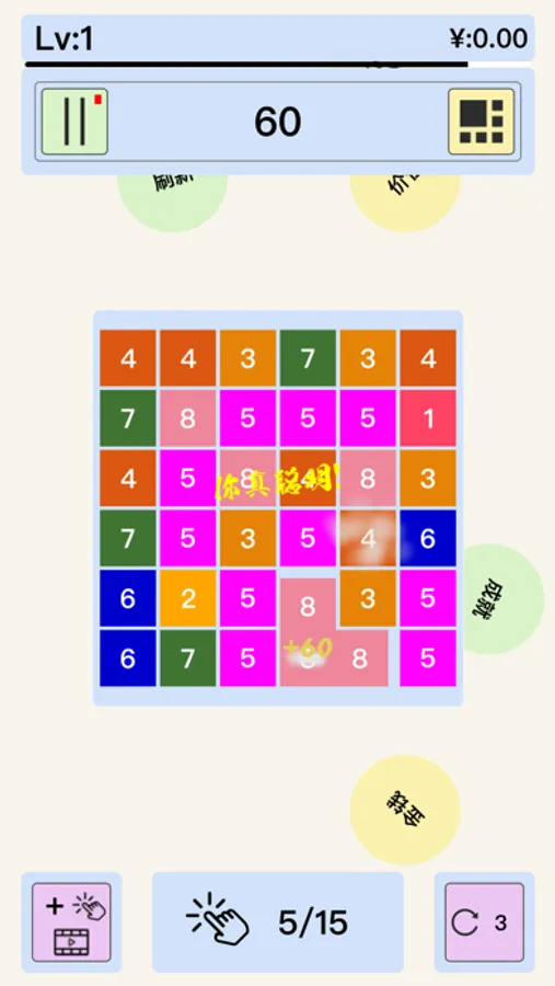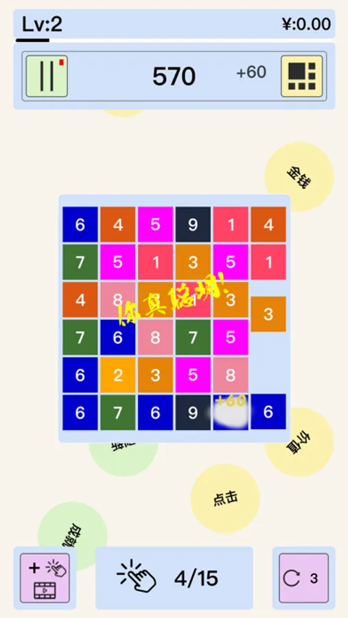 点击数字+1,当有3个相同的相邻数字,那么就可以消除生成为一个大于1的数字方块值。记得搭配策略,越消越上瘾,祝你早日成为消除王者