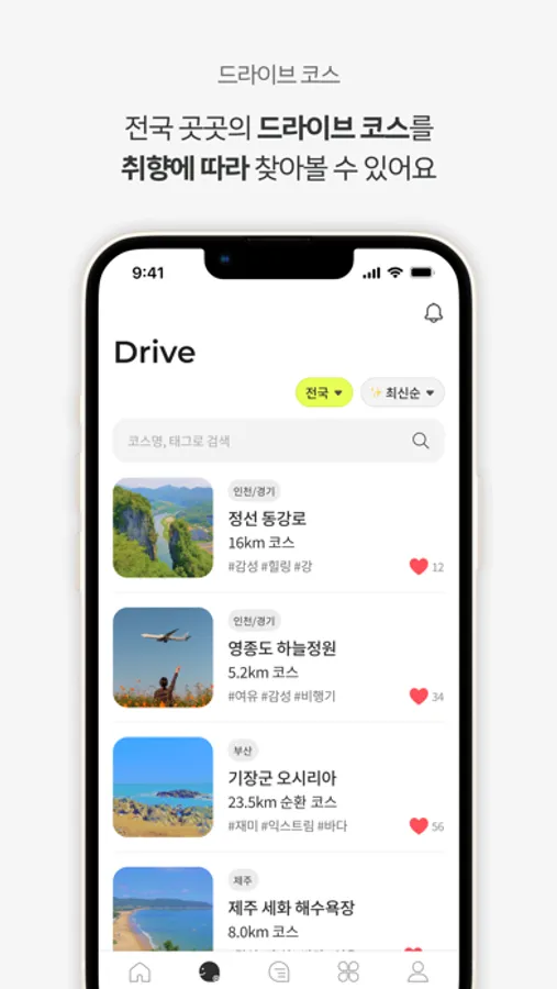 드라이브 코스 :: 전국 방방 곳곳의 드라이브 코스를 취향에 따라 찾아볼 수 있어요.