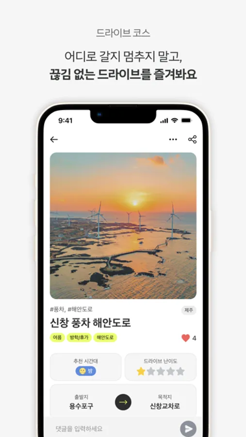 지금 카잉 앱에서 다양한 드라이브 코스를 만나보세요.