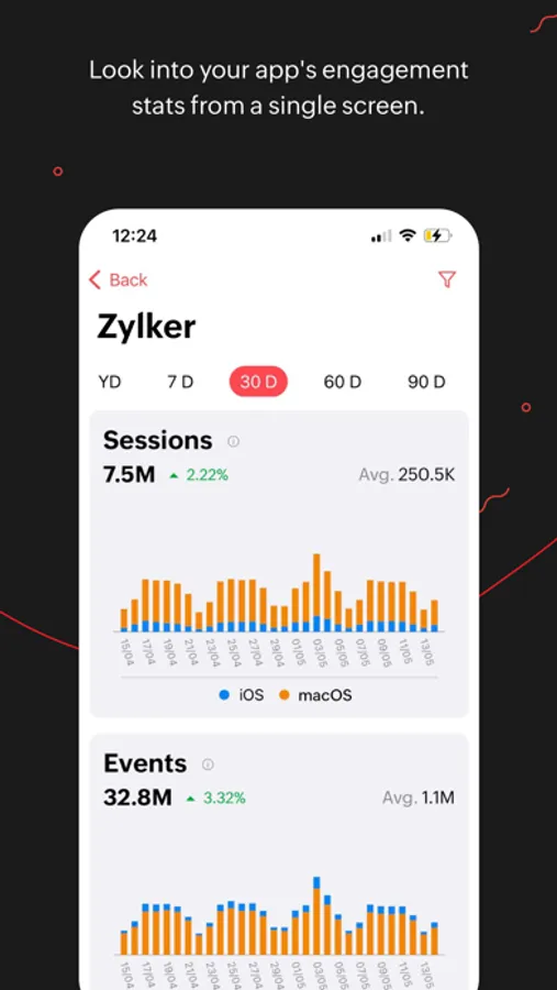 With 25+ purpose-built features that provide you with real-time insights on your app's performance, usage, health, adoption, engagement, and growth, it supports apps built for the entire apple ecosystem (iOS, macOS, watch OS, iPad OS and tvOS)