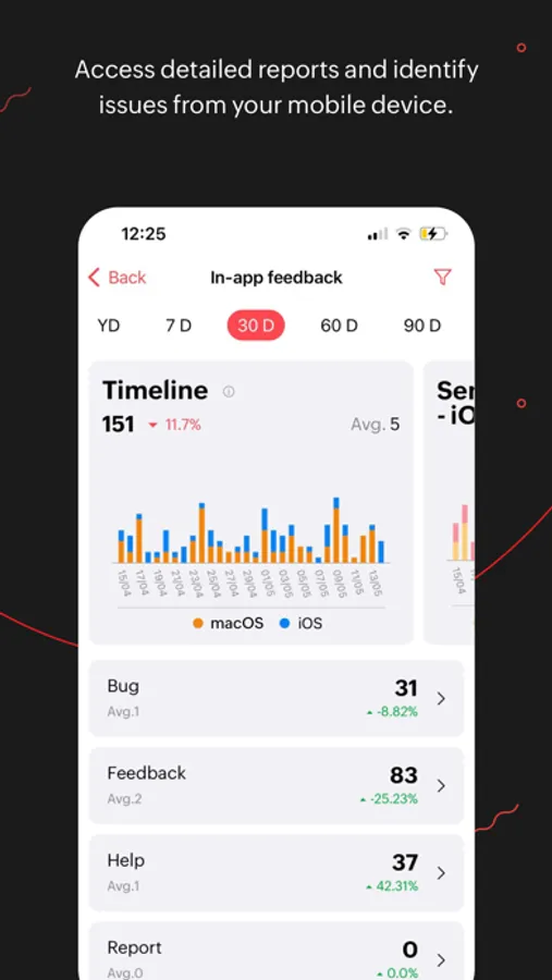 Your Apptics dashboard is now available within your smartphone. View and analyze app metrics from anywhere, anytime.