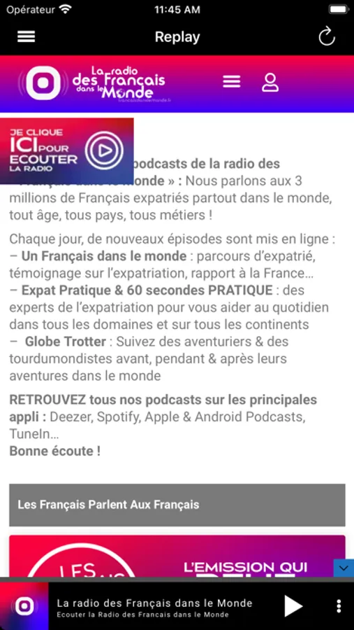 Bienvenue aux 3 millions d'expatriés qui, aux 4 coins du monde, écoutent notre programme musical pop, nos chroniques, nos infos, nos rendez-vous pratiques pour bien vivre votre expatriation!