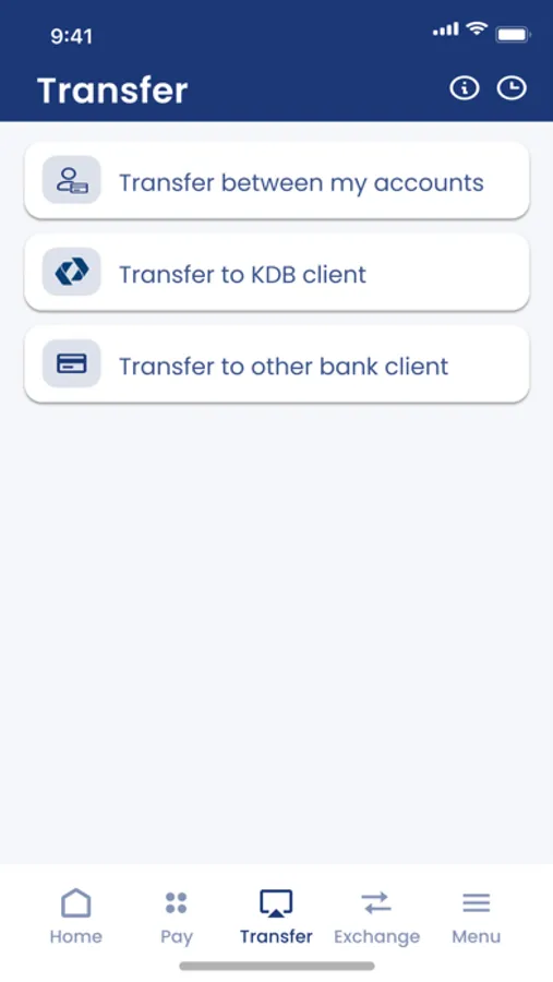 • KDB Mobile Banking application supports three languages; Uzbek, Russian and English.