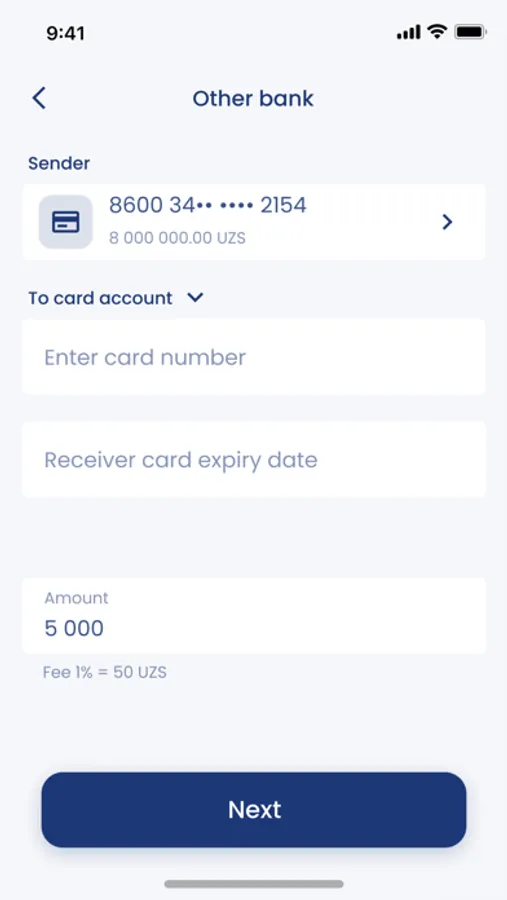 • make external UZS transfers from UzCard KDB to UzCard of any other bank;