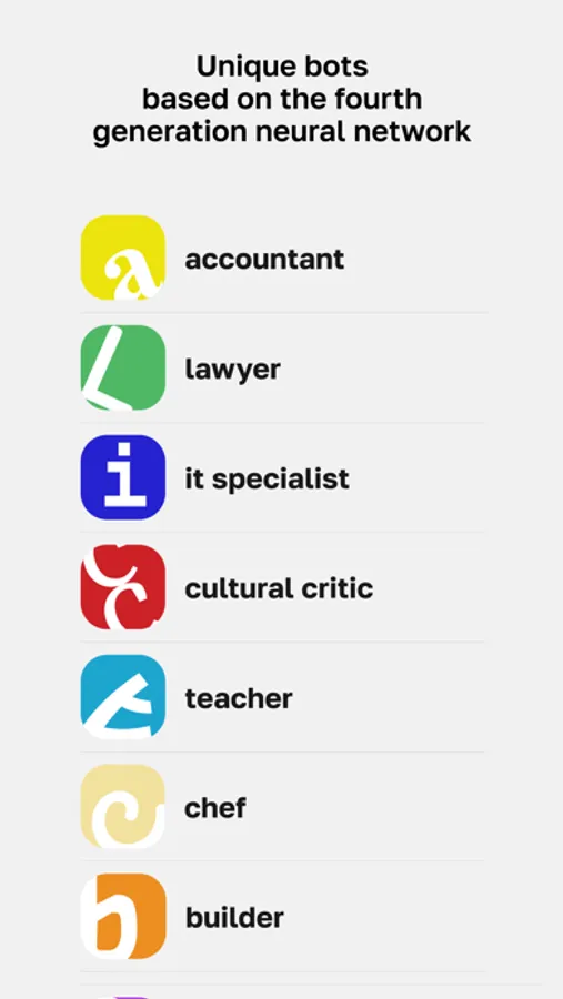 — A vast variety of bots for all occasions from a teacher to a lawyer or a cook