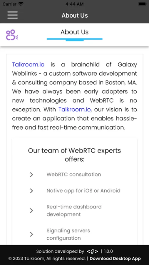 Web - TalkRoom.io can be used on Desktop, Laptop, Other handheld devices with a WebRTC-enabled browser (Chrome, Firefox, Opera).