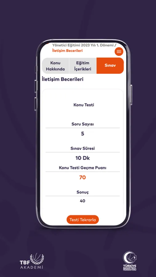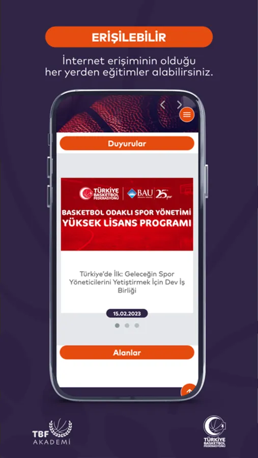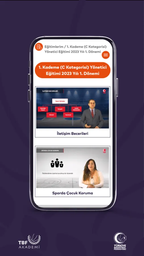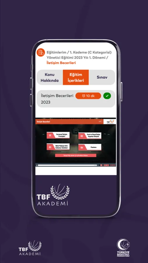 TBF Akademi’de antrenör, hakem, yönetici, atletik performans antrenörü, veli, sağlık çalışanları, lig temsilcisi ve istatistik eğitimleri bulunmaktadır.