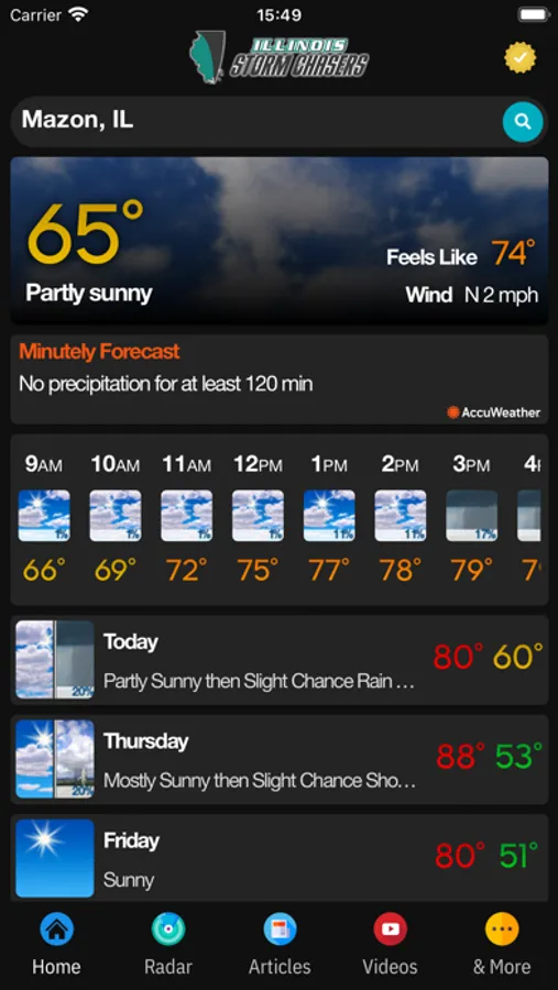 Live weather conditions from your neighborhood weather station, precipitation forecasts down to the minute. Hourly forecast out to 48 hours, and 7 days of detailed daily and nightly forecasts. Radar is interactive, NOAA NEXRAD data with industry-leading update times for a consumer weather app. Select your favorable radar color scheme and desired layers.