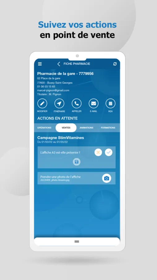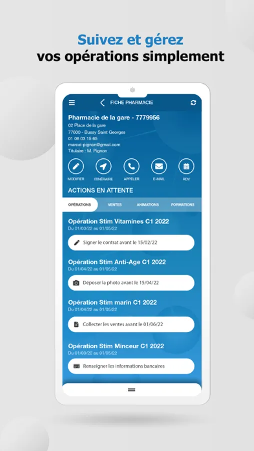 StimBay est une application multi-réseau à destination des acteurs de la pharmacie qui optimise leurs visites en point de vente : signature de contrat, suivi d'opération, relevé de ventes, conformité linéaire, rapport de visite, le tout dans une seule application mobile !