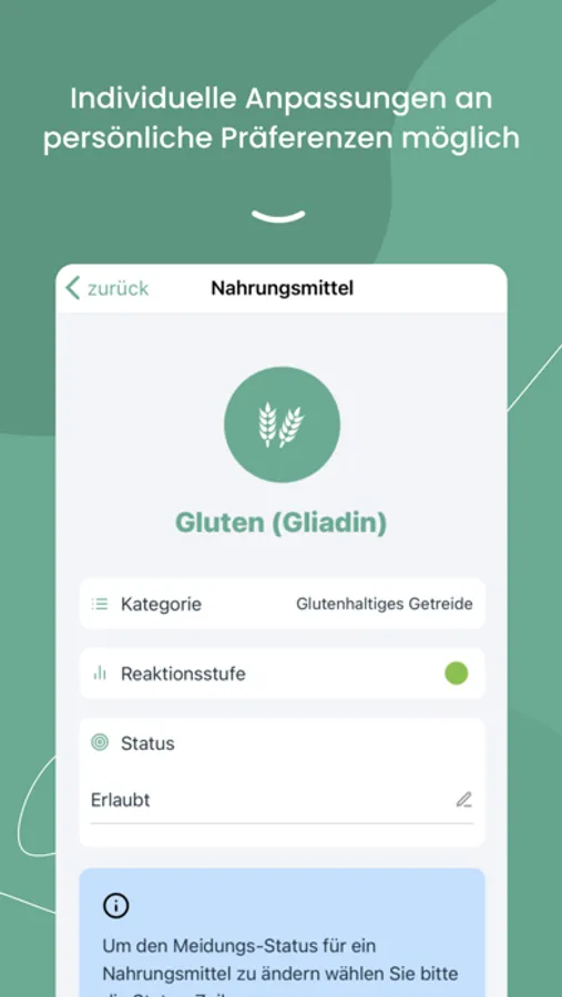 Ziel dieser App ist es, den Nutzer dieser App in Kombination mit seinen Testergebnissen bei seiner Ernährungsumstellung zu unterstützen. Wir weisen darauf hin, dass Ergebnisse und möglicher Erfolg einer Ernährungsumstellung von vielen Faktoren beeinflusst werden und empfehlen in jedem Fall einen fachlich versierten Arzt für eine Ernährungsumstellung und den Umgang mit den Testergebnissen zu konsultieren. Diesem obliegt die Therapiehoheit. Bei Beschwerden oder für eine medizinische Zweckbestimmung ist die Konsultation eines Arztes obligatorisch. Bitte beachten Sie, dass z. B. klassische, IgE-vermittelte Sofortallergien unter Umständen zu einem lebensbedrohlichen Zustand führen können.