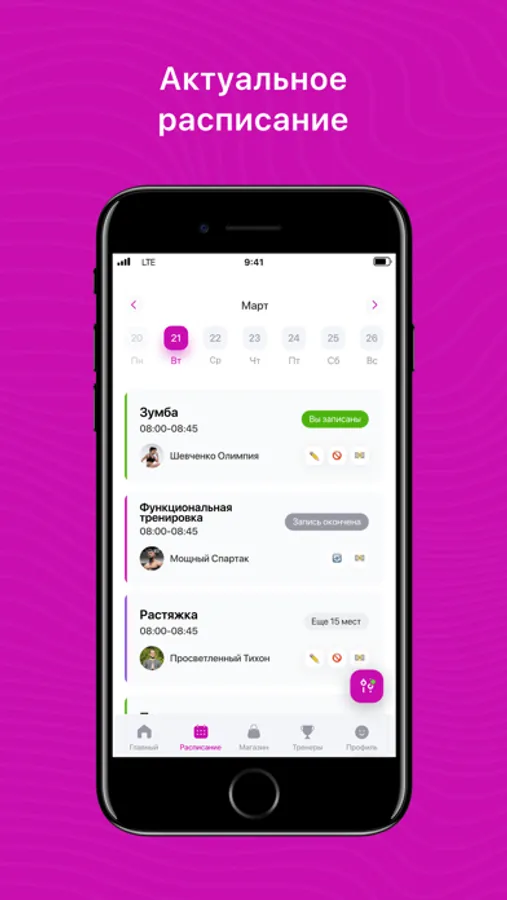 Мобильное приложение для клиентов фитнес-клубов и спортивных студий