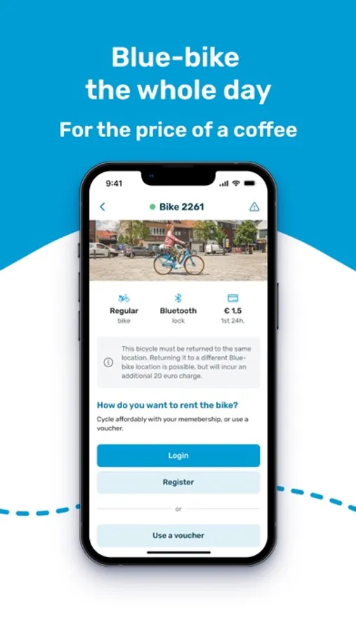 Looking for a smooth connection after your train or bus ride? Blue-bike is available at more than 100 locations in Belgium. Become a member for just €12 per year and borrow up to 2 bikes at a time. Ride wherever you want for a maximum of €3.50 for the first 24 hours.