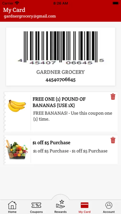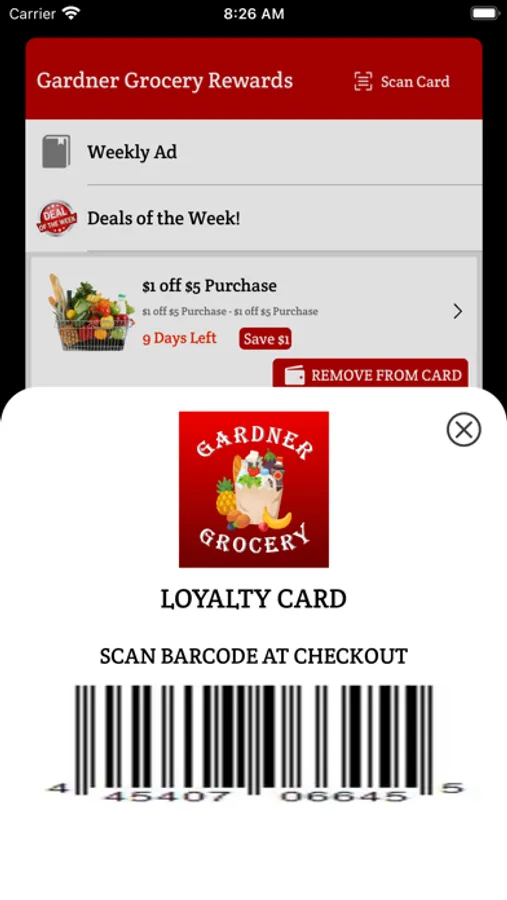 The Gardner Grocery Rewards App is the easiest way for our loyal customers to receive savings and digital coupons every time they shop! The Gardner Grocery Rewards App brings all this to your smartphone device, with a simple and easy to use App. Saving in-store is simple and easy. Simply register for a new account, add coupons to your card on the app, and present the Gardner Grocery Rewards App!