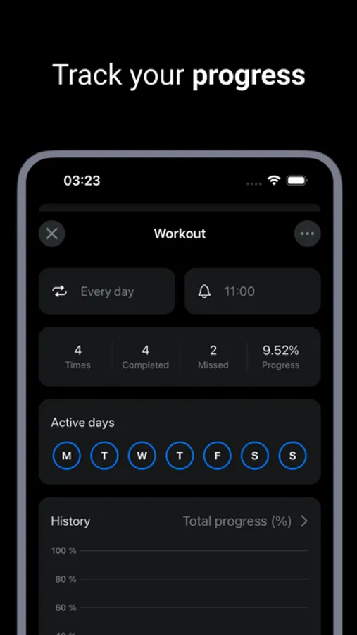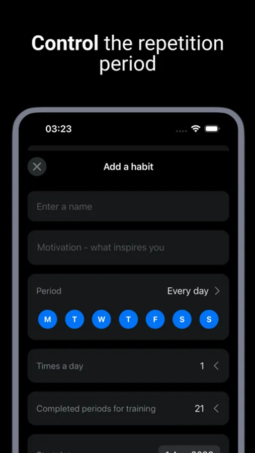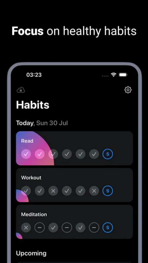 Simple Habits Tracker is an app for tracking healthy habits with notifications and completion statistics. Create habits, choose the frequency and days in the week, and the app will help you stay on the right path to success!