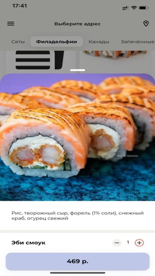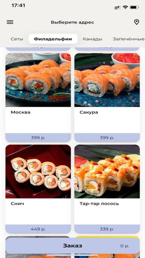 - Выберите категорию блюд и добавьте блюдо в корзину
