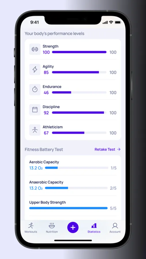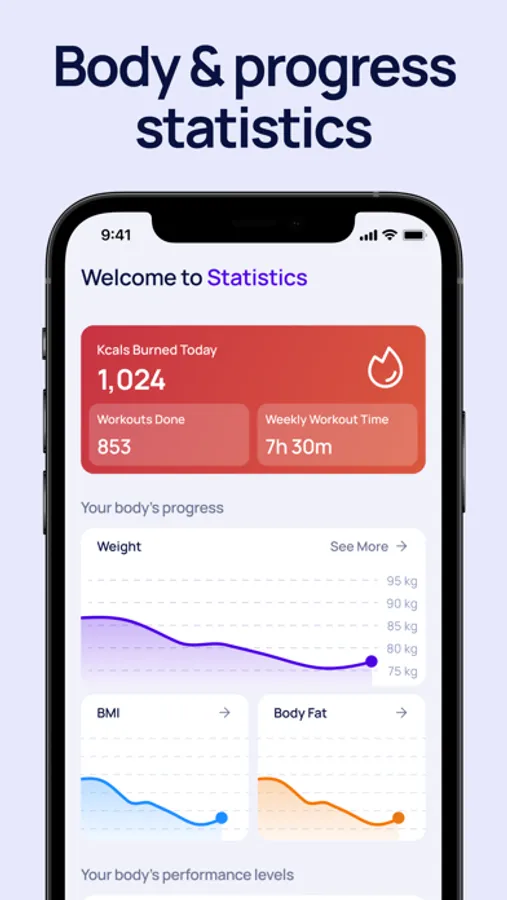 Insight Panel (Advanced Fitness Tracker): Track your progress with our comprehensive tracking features. Monitor key metrics such as BMI, body fat percentage, fasted glycemia, resting bpm, overall weight, sleep quality, and more. Our gamified interface makes being consistent so much more rewarding. Keep up with your training plan and level up your physical stats on your journey toward the ideal body.
