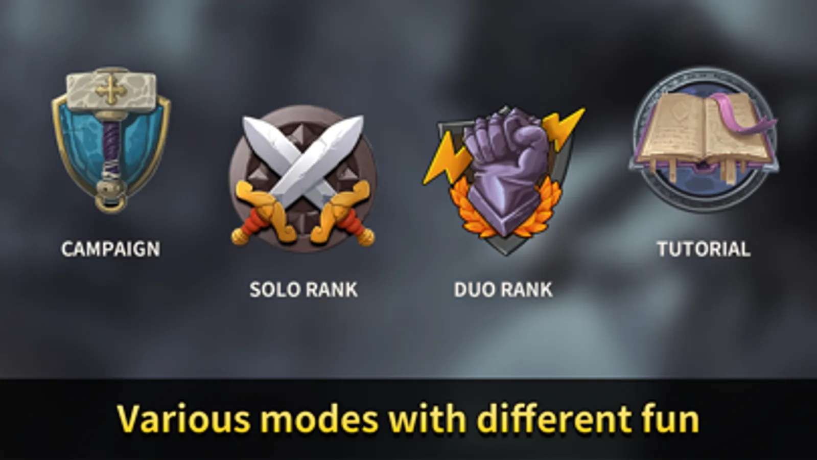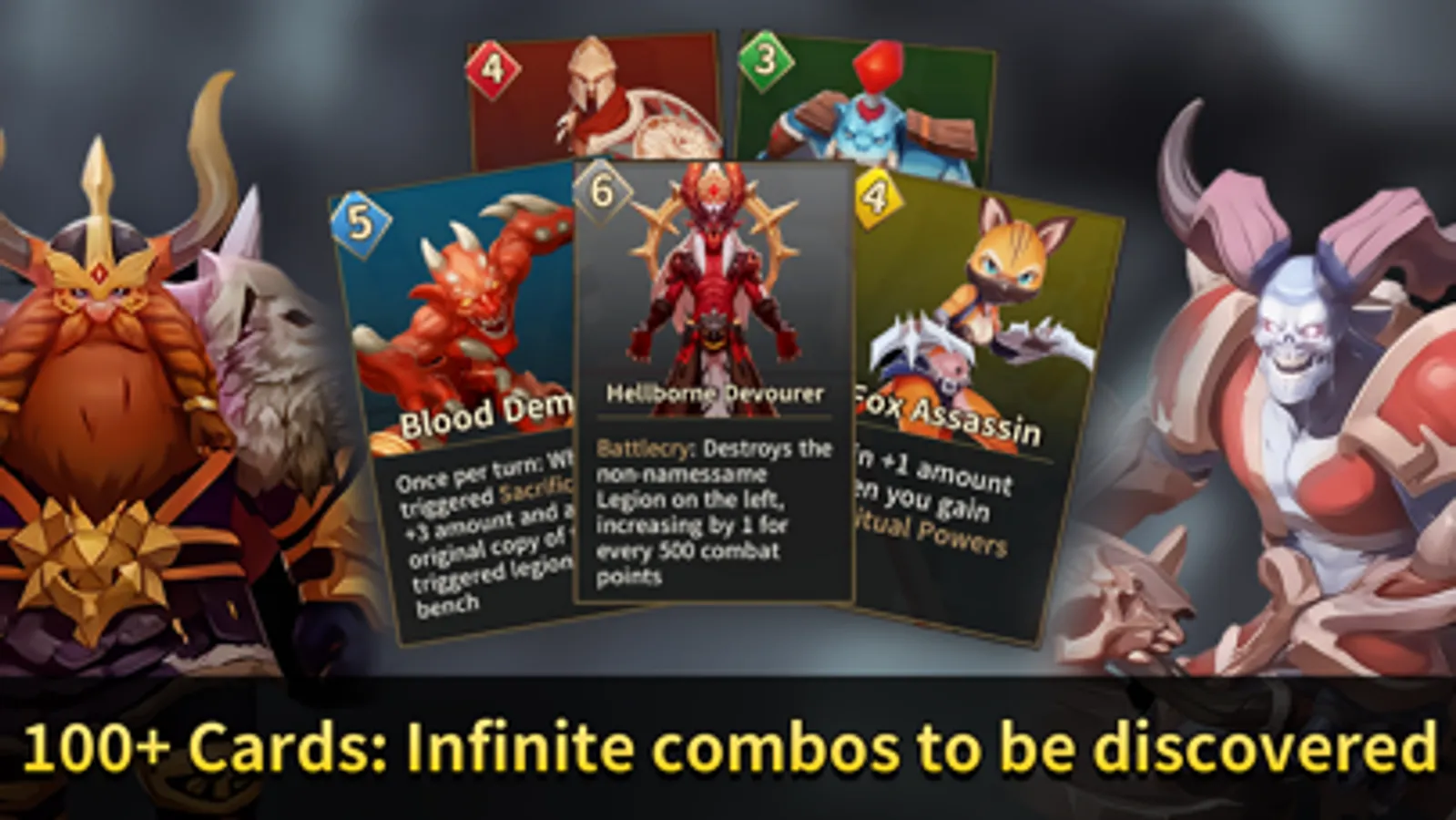 PVE: Single-player casual asynchronous PvP mode: "Soul of War" Campaign gameplay, suitable for casual and fragmented time players, with no time limit, pause the game at any time, and continue after finishing tasks. Plenty of time to think and choose. Each round you'll be matched with a different player's mirror legion, and the game will help you match similar-strength opponents. Choose skilled artifacts, match your legion cards, grow your legion from 1 to 1000 or more, and conquer other opponents.